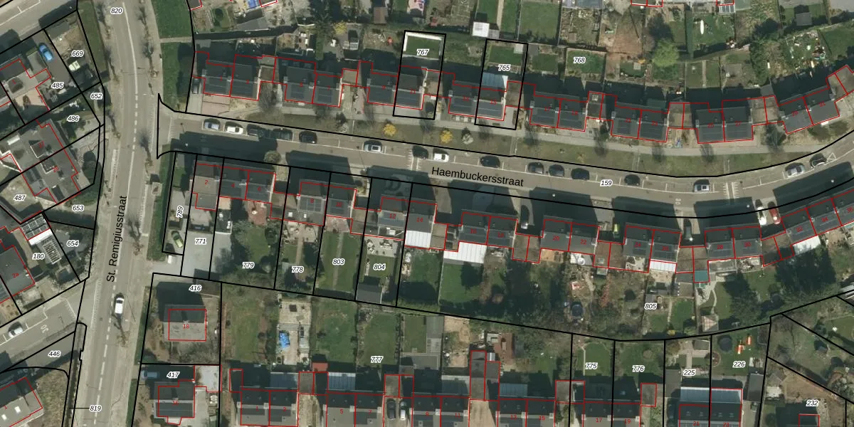 Haembuckersstraat 14 is gelegen op kadastraal perceel SPV00E805. Deze kadastrale aanduiding is uniek en wordt gebruikt door het Kadaster om eigendomsrechten en andere zakelijke rechten vast te leggen. Het perceel maakt onderdeel uit van de kadastrale gemeente Simpelveld.