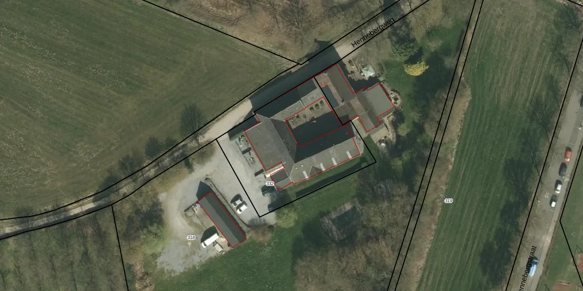 Hennebergweg 1-g is gelegen op kadastraal perceel SPV00L332. Deze kadastrale aanduiding is uniek en wordt gebruikt door het Kadaster om eigendomsrechten en andere zakelijke rechten vast te leggen. Het perceel maakt onderdeel uit van de kadastrale gemeente Simpelveld.
