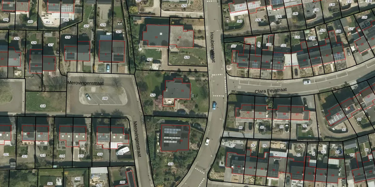 Houbiersstraat 21 is gelegen op kadastraal perceel SPV00E529. Deze kadastrale aanduiding is uniek en wordt gebruikt door het Kadaster om eigendomsrechten en andere zakelijke rechten vast te leggen. Het perceel maakt onderdeel uit van de kadastrale gemeente Simpelveld.