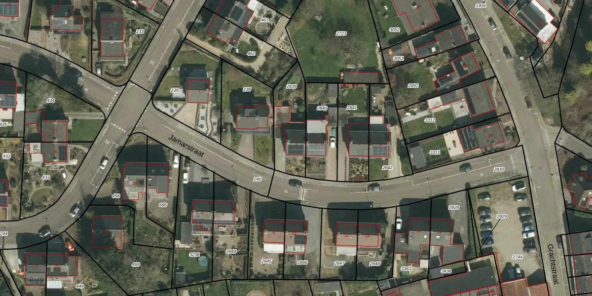 Gebruik de zoekbalk of klik op een perceel voor informatie over de adressen binnen dit perceel.