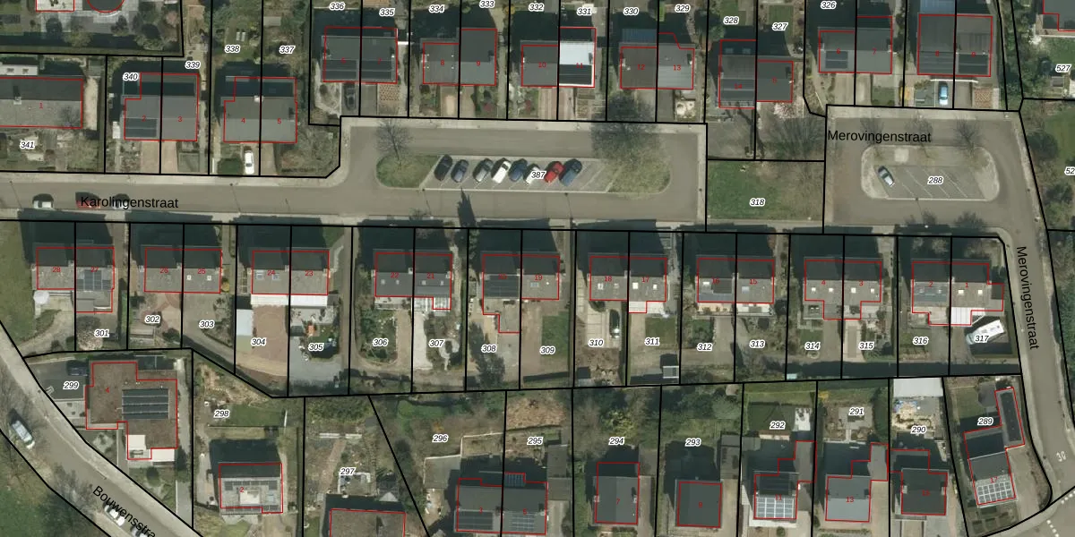 Het perceel waarop Karolingenstraat 19 staat heeft een oppervlakte van 297 m². Dit is een middelgroot perceel. De perceeloppervlakte wordt geregistreerd door het Kadaster. Gedetailleerde informatie over de maten van dit perceel kunt u vinden in het rapport Kadastrale kaart met maatvoering van Karolingenstraat 19.