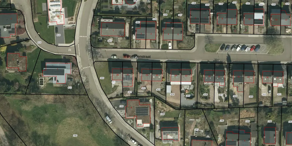 Karolingenstraat 26 is gelegen op kadastraal perceel SPV00E302. Deze kadastrale aanduiding is uniek en wordt gebruikt door het Kadaster om eigendomsrechten en andere zakelijke rechten vast te leggen. Het perceel maakt onderdeel uit van de kadastrale gemeente Simpelveld.