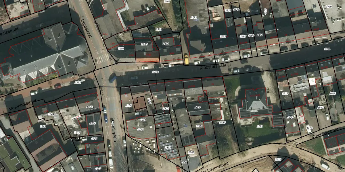 Gebruik de zoekbalk of klik op een perceel voor informatie over de adressen binnen dit perceel.