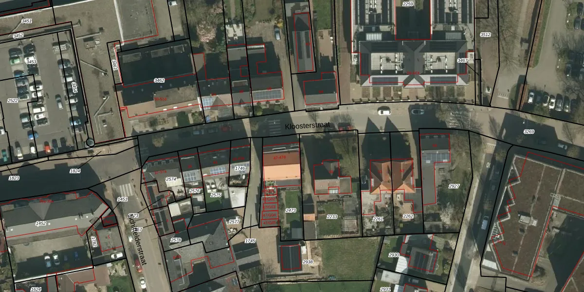 Kloosterstraat 47-c is gelegen op kadastraal perceel SPV00B2473. Deze kadastrale aanduiding is uniek en wordt gebruikt door het Kadaster om eigendomsrechten en andere zakelijke rechten vast te leggen. Het perceel maakt onderdeel uit van de kadastrale gemeente Simpelveld.