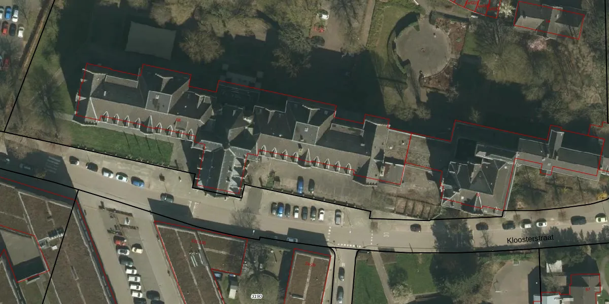 Het perceel waarop Kloosterstraat 68 staat heeft een oppervlakte van 2,4 ha. Dit is een zeer groot perceel. De perceeloppervlakte wordt geregistreerd door het Kadaster. Gedetailleerde informatie over de maten van dit perceel kunt u vinden in het rapport Kadastrale kaart met maatvoering van Kloosterstraat 68.