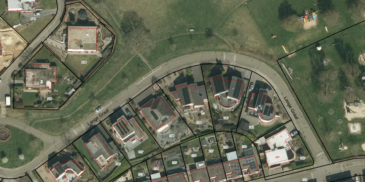Lange Graaf 7 is gelegen op kadastraal perceel SPV00E739. Deze kadastrale aanduiding is uniek en wordt gebruikt door het Kadaster om eigendomsrechten en andere zakelijke rechten vast te leggen. Het perceel maakt onderdeel uit van de kadastrale gemeente Simpelveld.