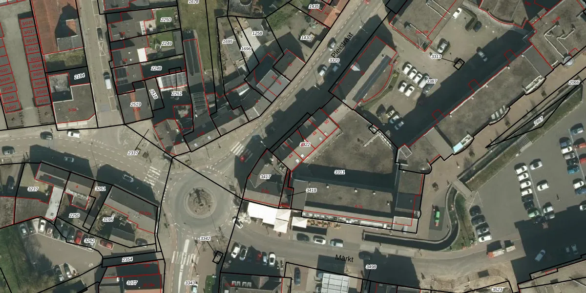Het perceel waarop Markt 46 staat heeft een oppervlakte van 1497 m². Dit is een zeer groot perceel. De perceeloppervlakte wordt geregistreerd door het Kadaster. Gedetailleerde informatie over de maten van dit perceel kunt u vinden in het rapport Kadastrale kaart met maatvoering van Markt 46.