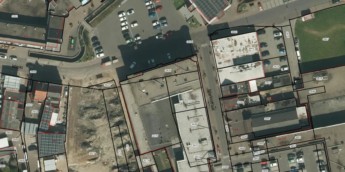 Het perceel waarop Markt 5-b staat heeft een oppervlakte van 415 m². Dit is een groot perceel. De perceeloppervlakte wordt geregistreerd door het Kadaster. Gedetailleerde informatie over de maten van dit perceel kunt u vinden in het rapport Kadastrale kaart met maatvoering van Markt 5-b.