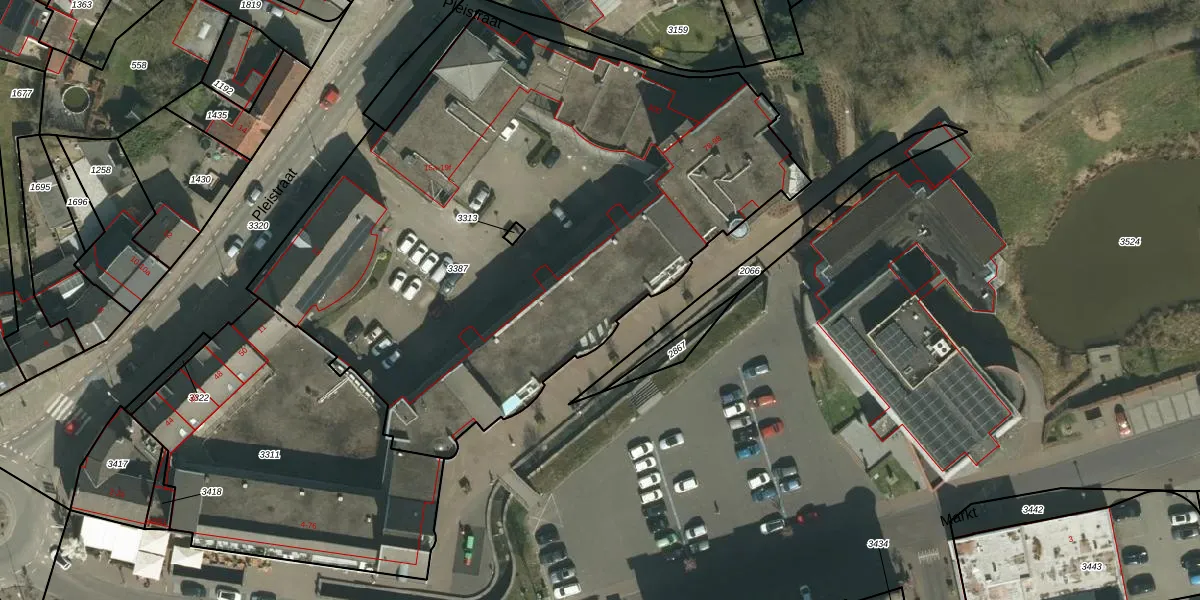Het perceel waarop Markt 52 staat heeft een oppervlakte van 3700 m². Dit is een zeer groot perceel. De perceeloppervlakte wordt geregistreerd door het Kadaster. Gedetailleerde informatie over de maten van dit perceel kunt u vinden in het rapport Kadastrale kaart met maatvoering van Markt 52.