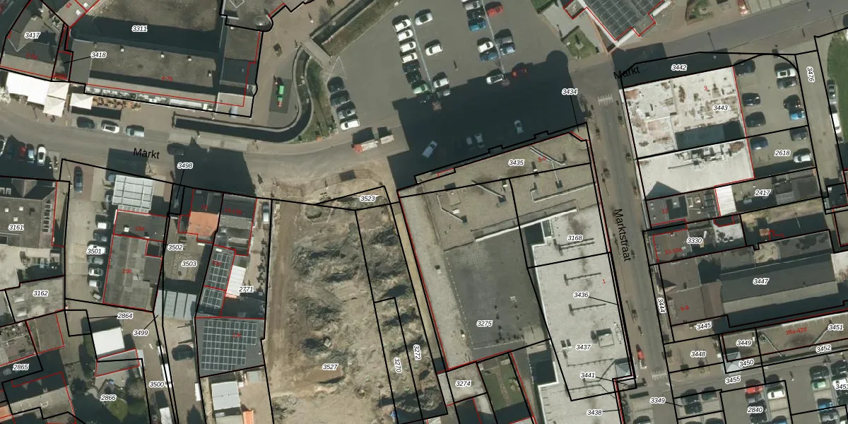 Het perceel waarop Markt 7-k staat heeft een oppervlakte van 1048 m². Dit is een zeer groot perceel. De perceeloppervlakte wordt geregistreerd door het Kadaster. Gedetailleerde informatie over de maten van dit perceel kunt u vinden in het rapport Kadastrale kaart met maatvoering van Markt 7-k.
