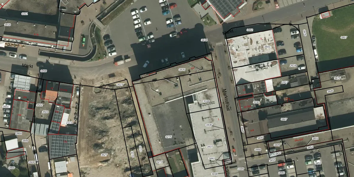 Het perceel waarop Markt 7-n staat heeft een oppervlakte van 1048 m². Dit is een zeer groot perceel. De perceeloppervlakte wordt geregistreerd door het Kadaster. Gedetailleerde informatie over de maten van dit perceel kunt u vinden in het rapport Kadastrale kaart met maatvoering van Markt 7-n.