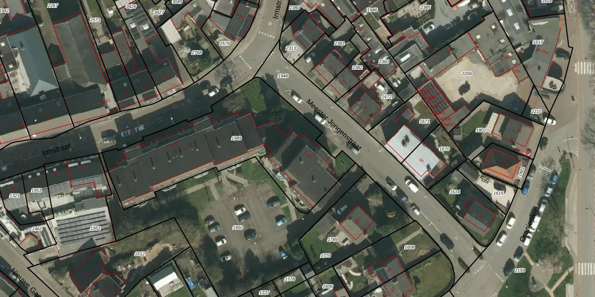 Het perceel waarop Meester Jongenstraat 9 staat heeft een oppervlakte van 1805 m². Dit is een zeer groot perceel. De perceeloppervlakte wordt geregistreerd door het Kadaster. Gedetailleerde informatie over de maten van dit perceel kunt u vinden in het rapport Kadastrale kaart met maatvoering van Meester Jongenstraat 9.