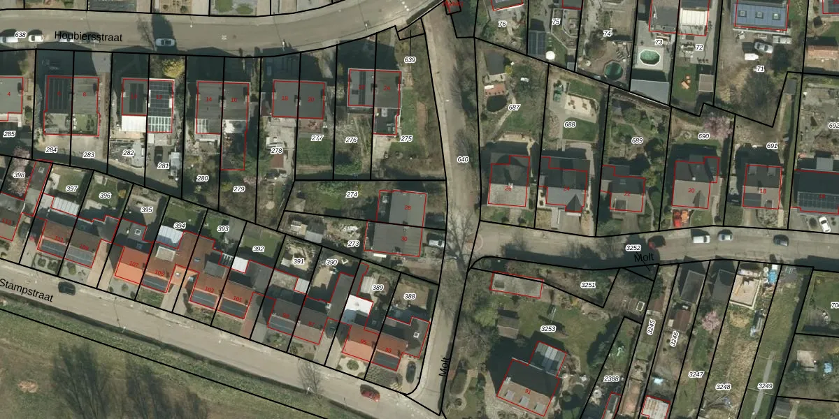 Het perceel waarop Molt 28 staat heeft een oppervlakte van 356 m². Dit is een groot perceel. De perceeloppervlakte wordt geregistreerd door het Kadaster. Gedetailleerde informatie over de maten van dit perceel kunt u vinden in het rapport Kadastrale kaart met maatvoering van Molt 28.