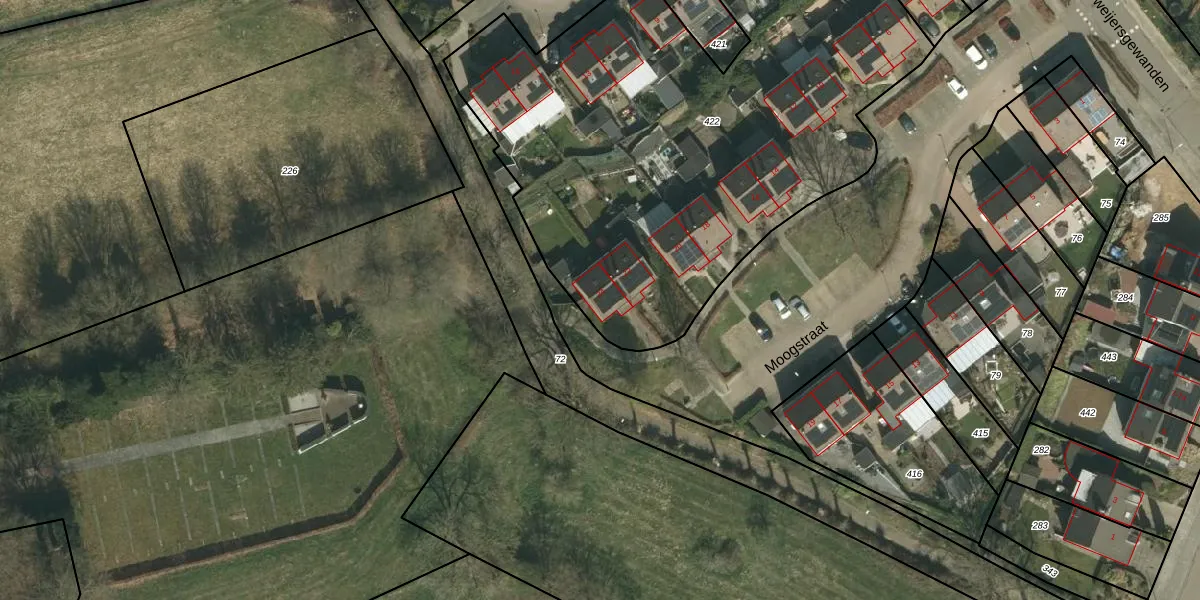 Moogstraat 24 is gelegen op kadastraal perceel SPV00H422. Deze kadastrale aanduiding is uniek en wordt gebruikt door het Kadaster om eigendomsrechten en andere zakelijke rechten vast te leggen. Het perceel maakt onderdeel uit van de kadastrale gemeente Simpelveld.