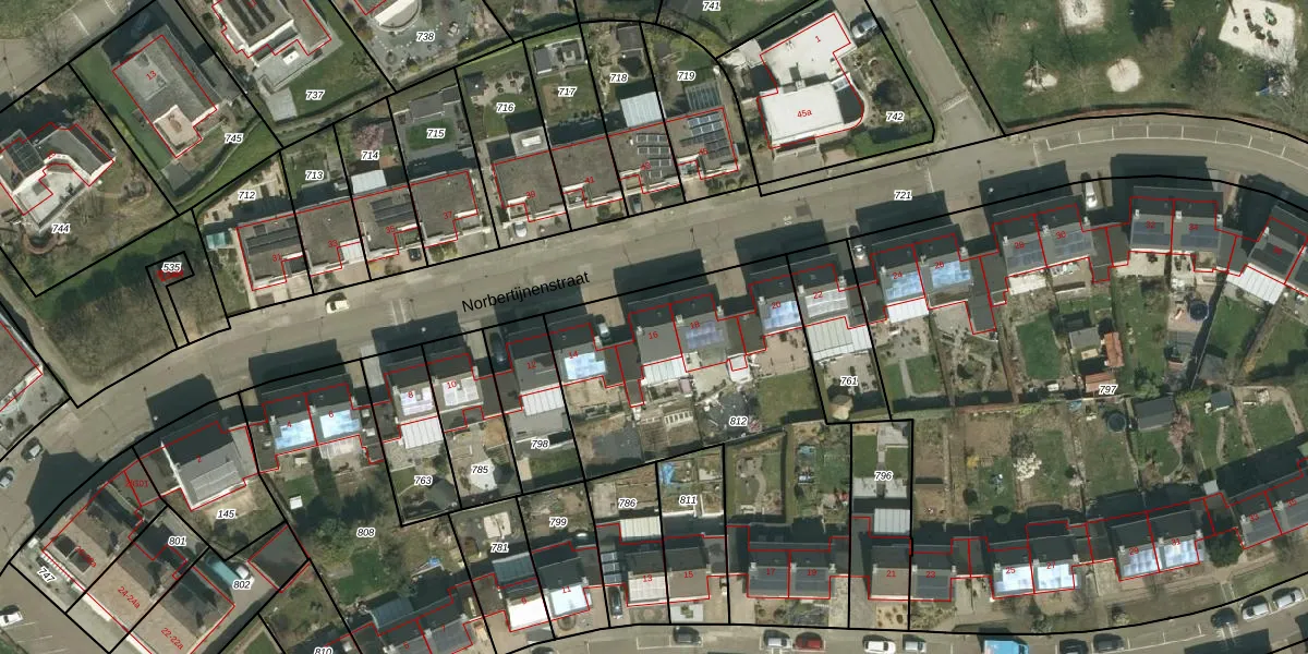 Norbertijnenstraat 16 is gelegen op kadastraal perceel SPV00E812. Deze kadastrale aanduiding is uniek en wordt gebruikt door het Kadaster om eigendomsrechten en andere zakelijke rechten vast te leggen. Het perceel maakt onderdeel uit van de kadastrale gemeente Simpelveld.