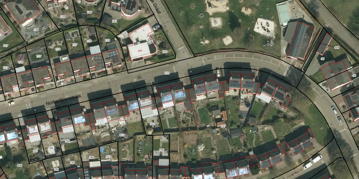 Het perceel waarop Norbertijnenstraat 26 staat heeft een oppervlakte van 5185 m². Dit is een zeer groot perceel. De perceeloppervlakte wordt geregistreerd door het Kadaster. Gedetailleerde informatie over de maten van dit perceel kunt u vinden in het rapport Kadastrale kaart met maatvoering van Norbertijnenstraat 26.