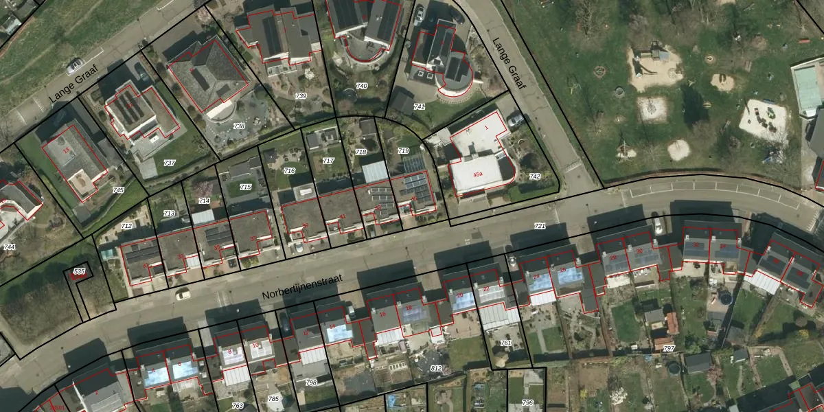 Norbertijnenstraat 45 is gelegen op kadastraal perceel SPV00E719. Deze kadastrale aanduiding is uniek en wordt gebruikt door het Kadaster om eigendomsrechten en andere zakelijke rechten vast te leggen. Het perceel maakt onderdeel uit van de kadastrale gemeente Simpelveld.