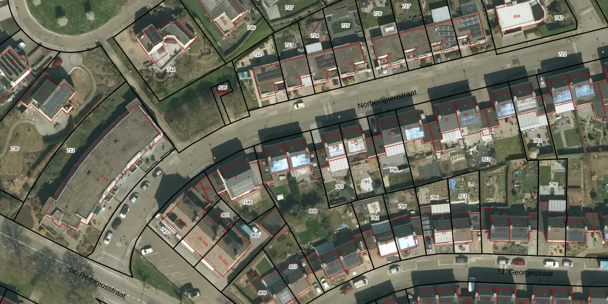Het perceel waarop Norbertijnenstraat 6 staat heeft een oppervlakte van 990 m². Dit is een groot perceel. De perceeloppervlakte wordt geregistreerd door het Kadaster. Gedetailleerde informatie over de maten van dit perceel kunt u vinden in het rapport Kadastrale kaart met maatvoering van Norbertijnenstraat 6.