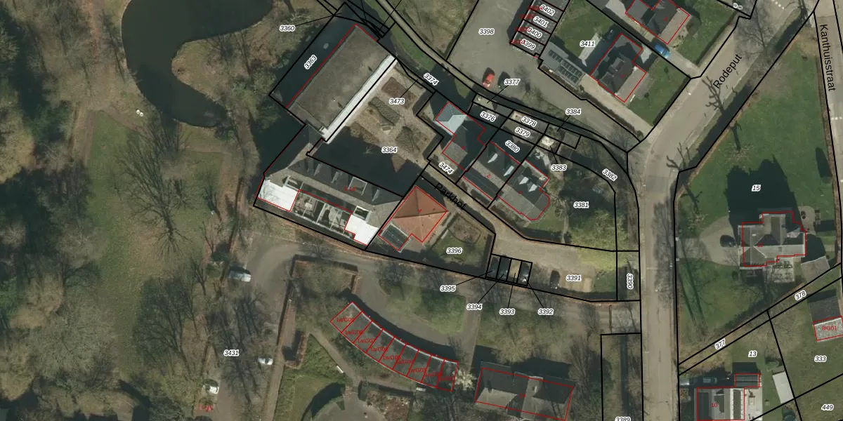 Gebruik de zoekbalk of klik op een perceel voor informatie over de adressen binnen dit perceel.