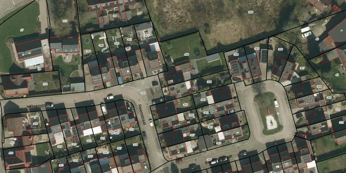 Het perceel waarop Reenstraat 13 staat heeft een oppervlakte van 337 m². Dit is een groot perceel. De perceeloppervlakte wordt geregistreerd door het Kadaster. Gedetailleerde informatie over de maten van dit perceel kunt u vinden in het rapport Kadastrale kaart met maatvoering van Reenstraat 13.