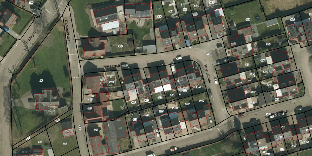 Reenstraat 8 is gelegen op kadastraal perceel SPV00H322. Deze kadastrale aanduiding is uniek en wordt gebruikt door het Kadaster om eigendomsrechten en andere zakelijke rechten vast te leggen. Het perceel maakt onderdeel uit van de kadastrale gemeente Simpelveld.