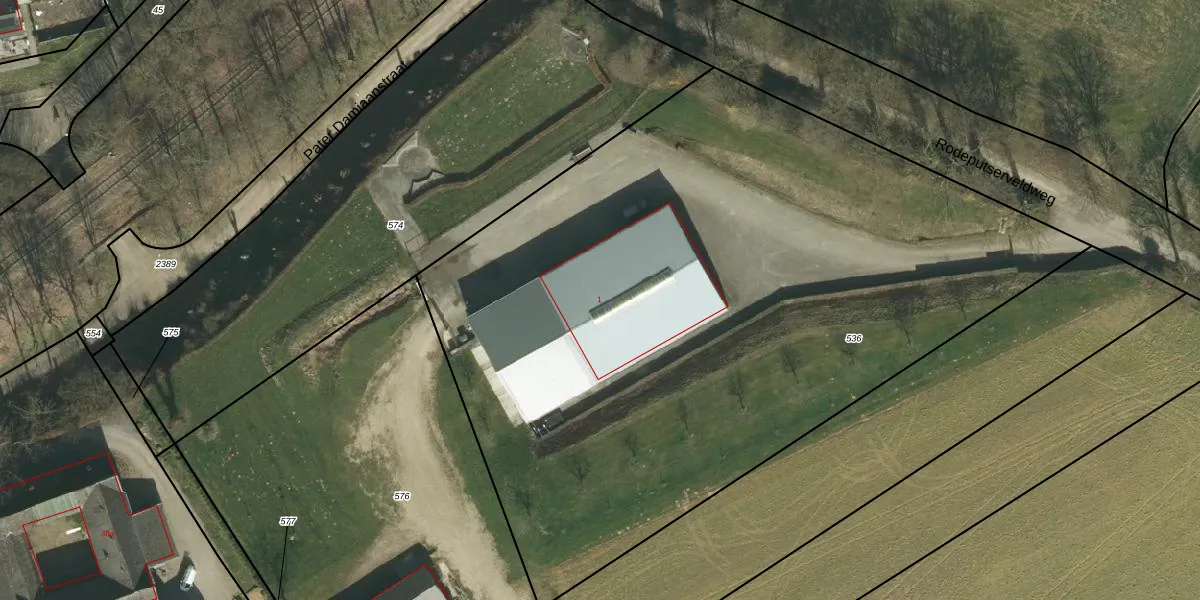 Het perceel waarop Rodeputserveldweg 1 staat heeft een oppervlakte van 5012 m². Dit is een zeer groot perceel. De perceeloppervlakte wordt geregistreerd door het Kadaster. Gedetailleerde informatie over de maten van dit perceel kunt u vinden in het rapport Kadastrale kaart met maatvoering van Rodeputserveldweg 1.