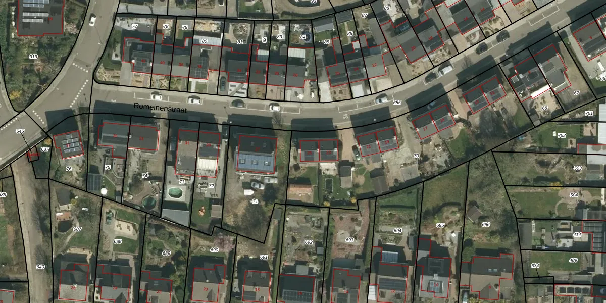 Romeinenstraat 25 is gelegen op kadastraal perceel SPV00E70. Deze kadastrale aanduiding is uniek en wordt gebruikt door het Kadaster om eigendomsrechten en andere zakelijke rechten vast te leggen. Het perceel maakt onderdeel uit van de kadastrale gemeente Simpelveld.