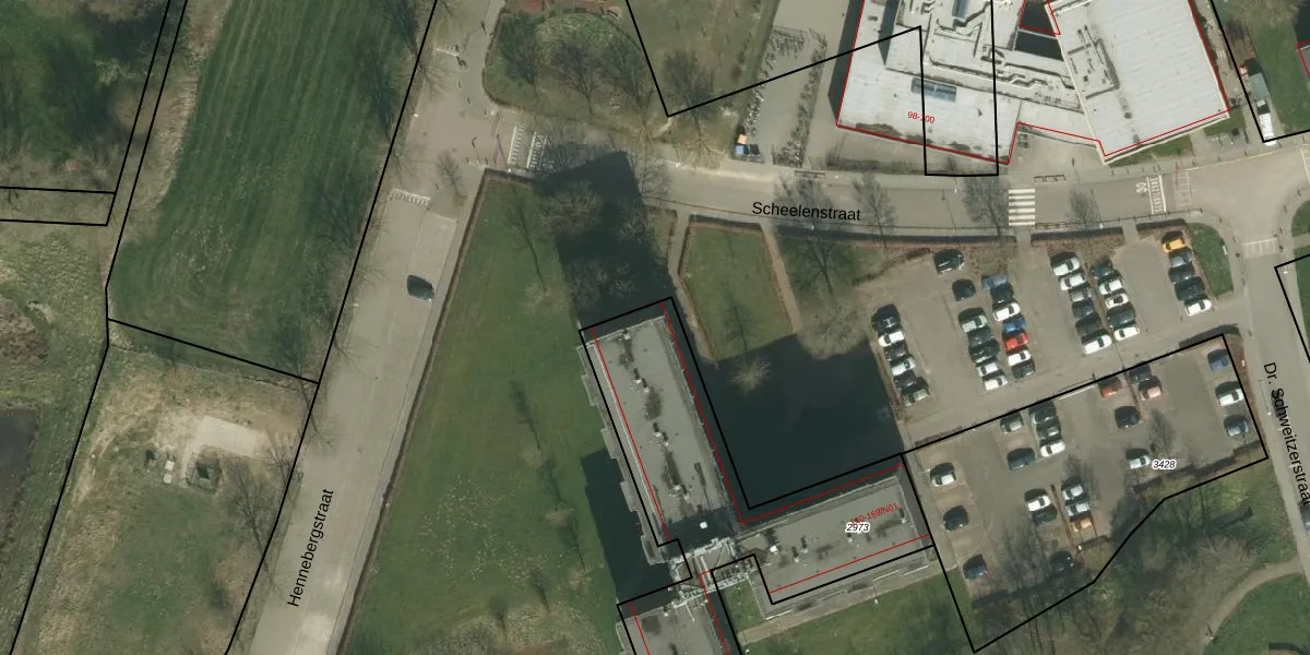 Het perceel waarop Scheelenstraat 111 staat heeft een oppervlakte van 1365 m². Dit is een zeer groot perceel. De perceeloppervlakte wordt geregistreerd door het Kadaster. Gedetailleerde informatie over de maten van dit perceel kunt u vinden in het rapport Kadastrale kaart met maatvoering van Scheelenstraat 111.