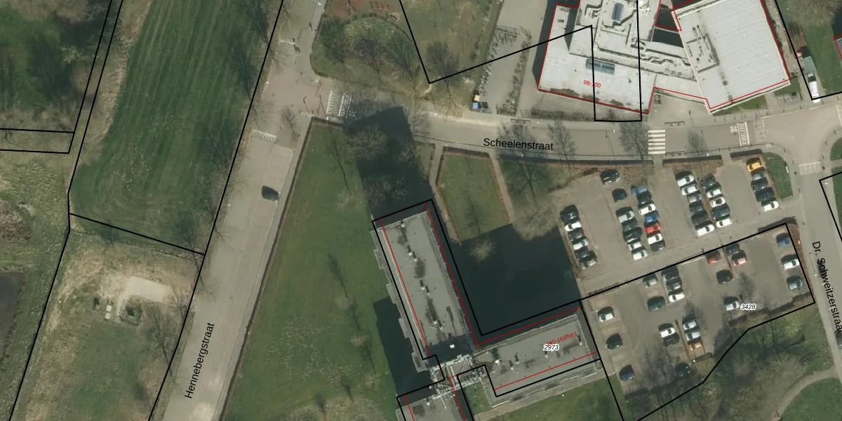 Het perceel waarop Scheelenstraat 114 staat heeft een oppervlakte van 1365 m². Dit is een zeer groot perceel. De perceeloppervlakte wordt geregistreerd door het Kadaster. Gedetailleerde informatie over de maten van dit perceel kunt u vinden in het rapport Kadastrale kaart met maatvoering van Scheelenstraat 114.