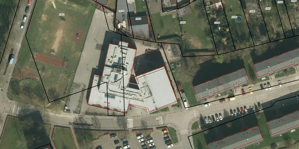 Scheelenstraat 98 is gelegen op kadastraal perceel SPV00D3475. Deze kadastrale aanduiding is uniek en wordt gebruikt door het Kadaster om eigendomsrechten en andere zakelijke rechten vast te leggen. Het perceel maakt onderdeel uit van de kadastrale gemeente Simpelveld.