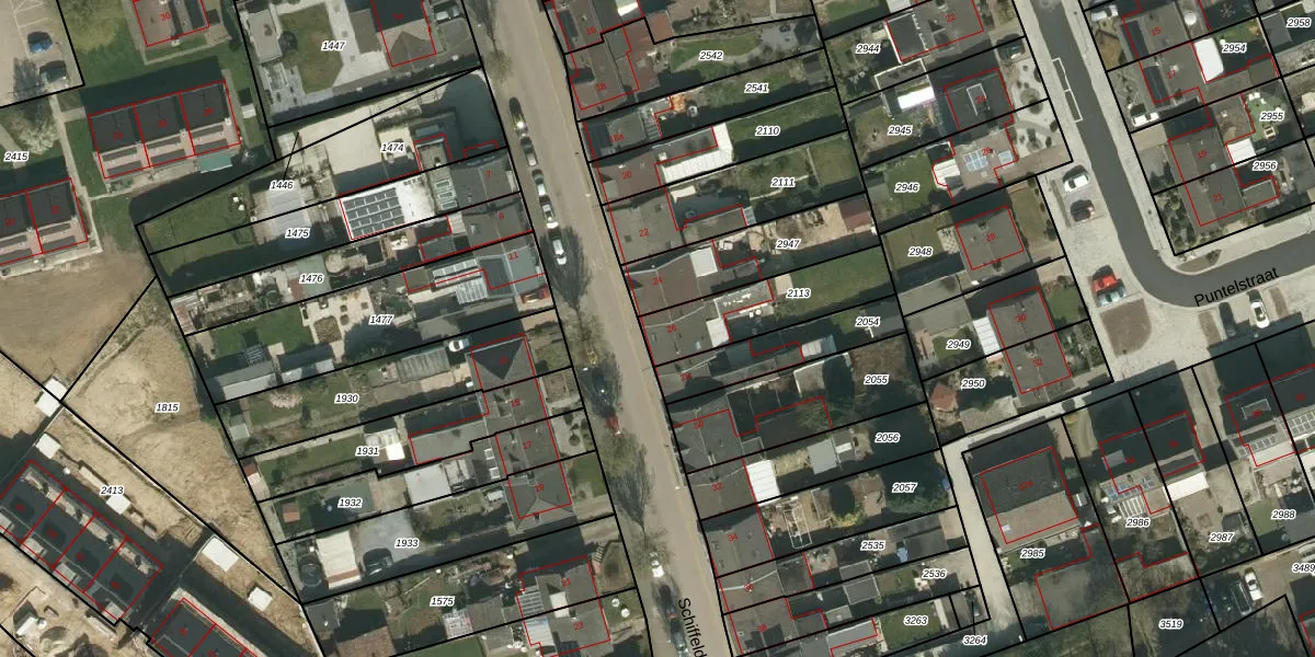 Gebruik de zoekbalk of klik op een perceel voor informatie over de adressen binnen dit perceel.