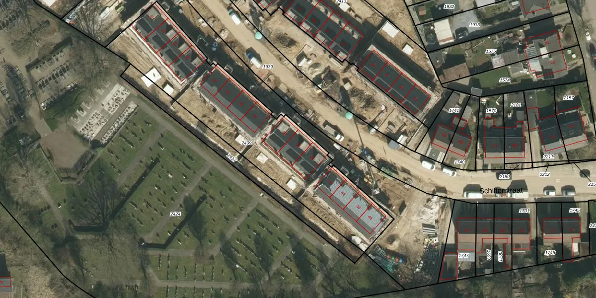 Het perceel waarop Schilterstraat 38 staat heeft een oppervlakte van 1980 m². Dit is een zeer groot perceel. De perceeloppervlakte wordt geregistreerd door het Kadaster. Gedetailleerde informatie over de maten van dit perceel kunt u vinden in het rapport Kadastrale kaart met maatvoering van Schilterstraat 38.