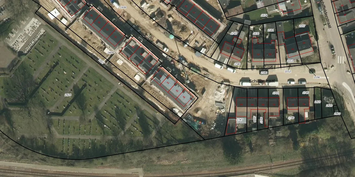 Het perceel waarop Schilterstraat 46 staat heeft een oppervlakte van 1980 m². Dit is een zeer groot perceel. De perceeloppervlakte wordt geregistreerd door het Kadaster. Gedetailleerde informatie over de maten van dit perceel kunt u vinden in het rapport Kadastrale kaart met maatvoering van Schilterstraat 46.