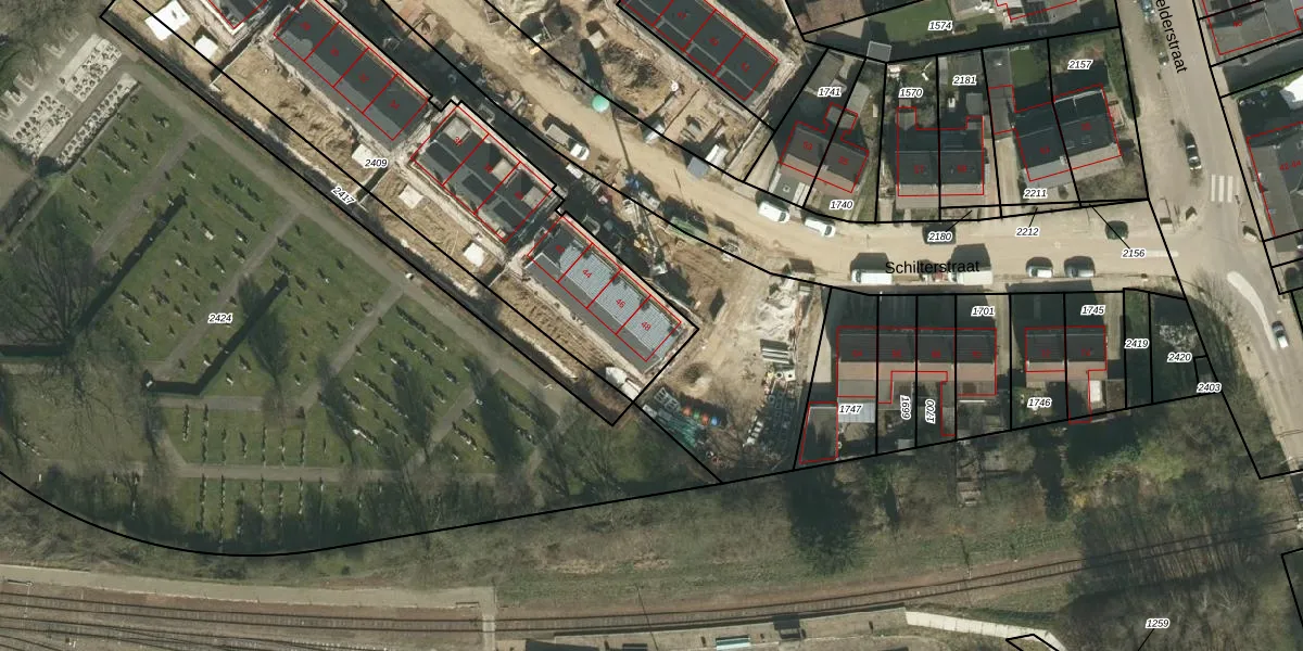 Het perceel waarop Schilterstraat 48 staat heeft een oppervlakte van 1980 m². Dit is een zeer groot perceel. De perceeloppervlakte wordt geregistreerd door het Kadaster. Gedetailleerde informatie over de maten van dit perceel kunt u vinden in het rapport Kadastrale kaart met maatvoering van Schilterstraat 48.
