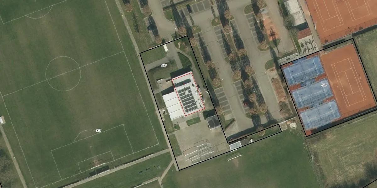 Het adres ligt op het perceel SPV00-M-587, dat zich in de kadastrale gemeente Simpelveld bevindt. Het perceel is kleiner dan gemiddeld in Simpelveld. Het perceel is 1970 m² groot, terwijl het gemiddelde ligt op 2712,87 m². Het kleinste perceel in de kadastrale gemeente is 0 m² groot. De grootste perceeloppervlakte is 16,2 ha. Dit is het enige adres dat aanwezig is op het perceel. De laatste wijziging in het de Basisregistratie Kadaster (BRK) was op 16-02-2023.