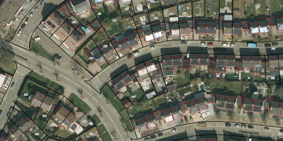 St. Georgestraat 6 is gelegen op kadastraal perceel SPV00E769. Deze kadastrale aanduiding is uniek en wordt gebruikt door het Kadaster om eigendomsrechten en andere zakelijke rechten vast te leggen. Het perceel maakt onderdeel uit van de kadastrale gemeente Simpelveld.
