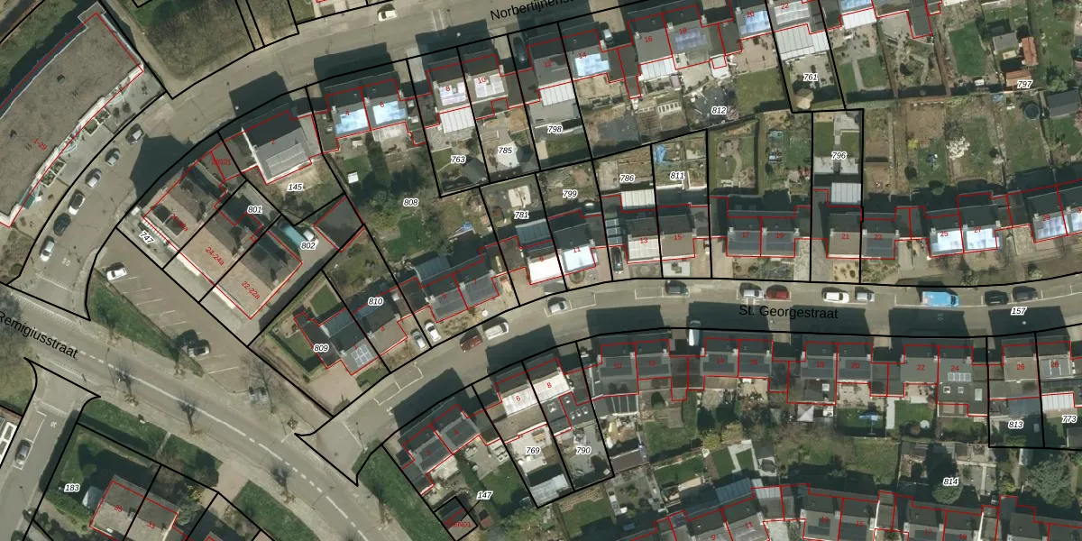 Het perceel waarop St. Georgestraat 9 staat heeft een oppervlakte van 225 m². Dit is een middelgroot perceel. De perceeloppervlakte wordt geregistreerd door het Kadaster. Gedetailleerde informatie over de maten van dit perceel kunt u vinden in het rapport Kadastrale kaart met maatvoering van St. Georgestraat 9.