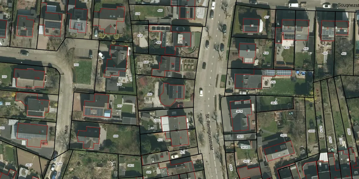 St. Remigiusstraat 9 is gelegen op kadastraal perceel SPV00E650. Deze kadastrale aanduiding is uniek en wordt gebruikt door het Kadaster om eigendomsrechten en andere zakelijke rechten vast te leggen. Het perceel maakt onderdeel uit van de kadastrale gemeente Simpelveld.