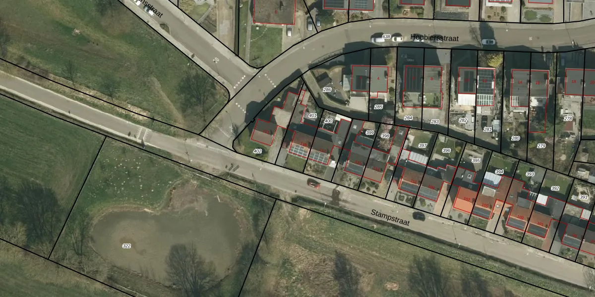 Stampstraat 119 is gelegen op kadastraal perceel SPV00E401. Deze kadastrale aanduiding is uniek en wordt gebruikt door het Kadaster om eigendomsrechten en andere zakelijke rechten vast te leggen. Het perceel maakt onderdeel uit van de kadastrale gemeente Simpelveld.