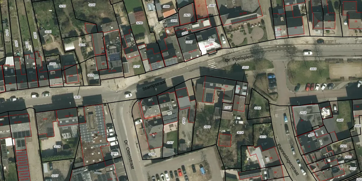Gebruik de zoekbalk of klik op een perceel voor informatie over de adressen binnen dit perceel.