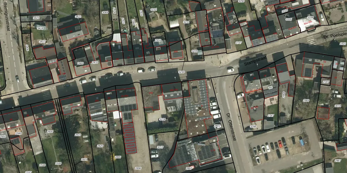 Stampstraat 26-c is gelegen op kadastraal perceel SPV00D3214. Deze kadastrale aanduiding is uniek en wordt gebruikt door het Kadaster om eigendomsrechten en andere zakelijke rechten vast te leggen. Het perceel maakt onderdeel uit van de kadastrale gemeente Simpelveld.