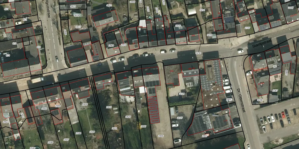 Stampstraat 28-a is gelegen op kadastraal perceel SPV00D2896. Deze kadastrale aanduiding is uniek en wordt gebruikt door het Kadaster om eigendomsrechten en andere zakelijke rechten vast te leggen. Het perceel maakt onderdeel uit van de kadastrale gemeente Simpelveld.