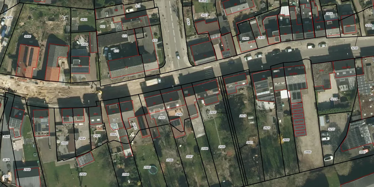 Gebruik de zoekbalk of klik op een perceel voor informatie over de adressen binnen dit perceel.