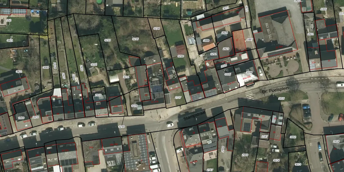 Stampstraat 45 is gelegen op kadastraal perceel SPV00D2737. Deze kadastrale aanduiding is uniek en wordt gebruikt door het Kadaster om eigendomsrechten en andere zakelijke rechten vast te leggen. Het perceel maakt onderdeel uit van de kadastrale gemeente Simpelveld.