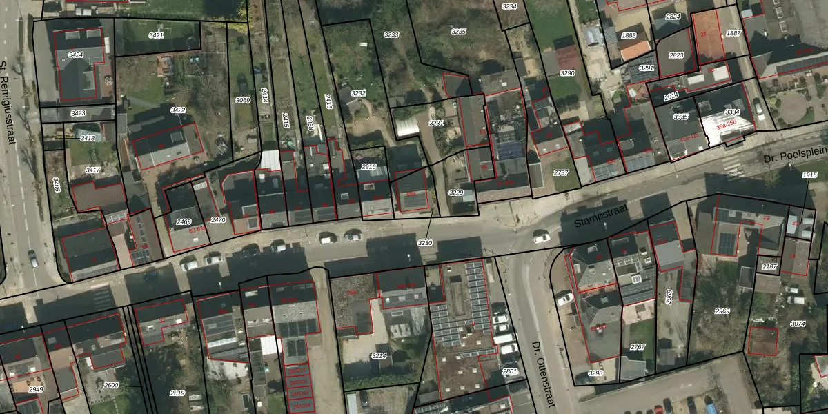 Stampstraat 49-a is gelegen op kadastraal perceel SPV00D3230. Deze kadastrale aanduiding is uniek en wordt gebruikt door het Kadaster om eigendomsrechten en andere zakelijke rechten vast te leggen. Het perceel maakt onderdeel uit van de kadastrale gemeente Simpelveld.