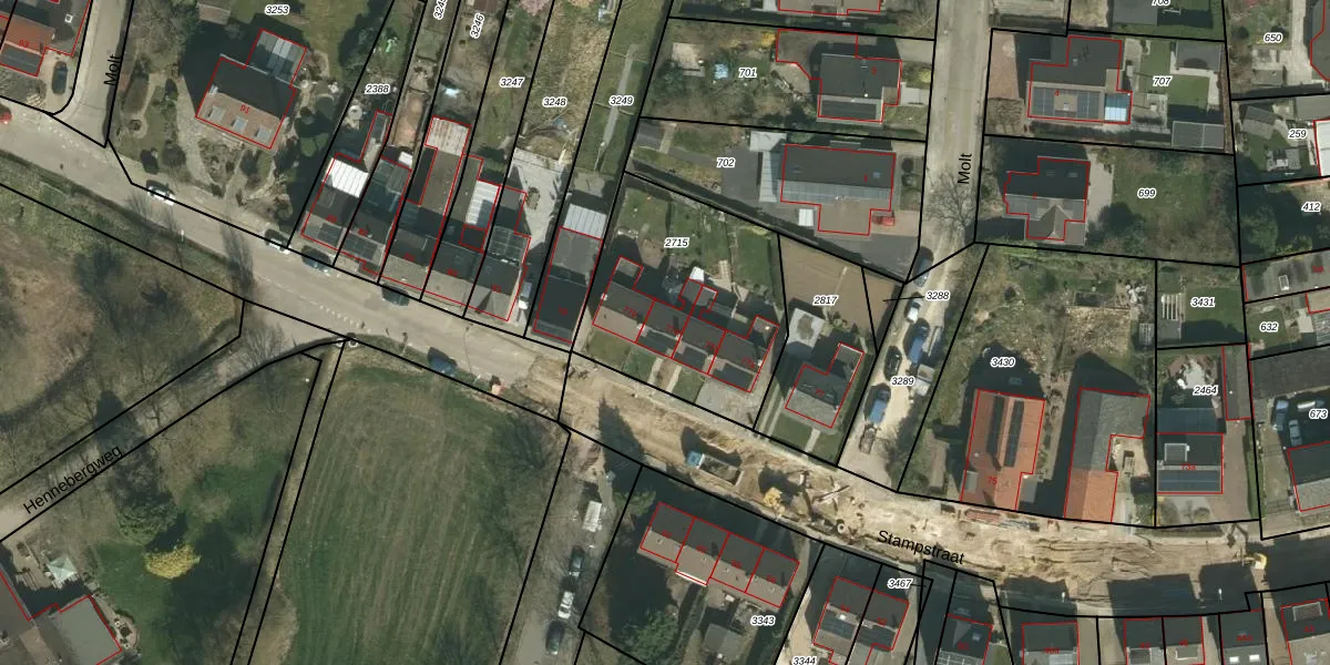 Het perceel waarop Stampstraat 77-d staat heeft een oppervlakte van 831 m². Dit is een groot perceel. De perceeloppervlakte wordt geregistreerd door het Kadaster. Gedetailleerde informatie over de maten van dit perceel kunt u vinden in het rapport Kadastrale kaart met maatvoering van Stampstraat 77-d.