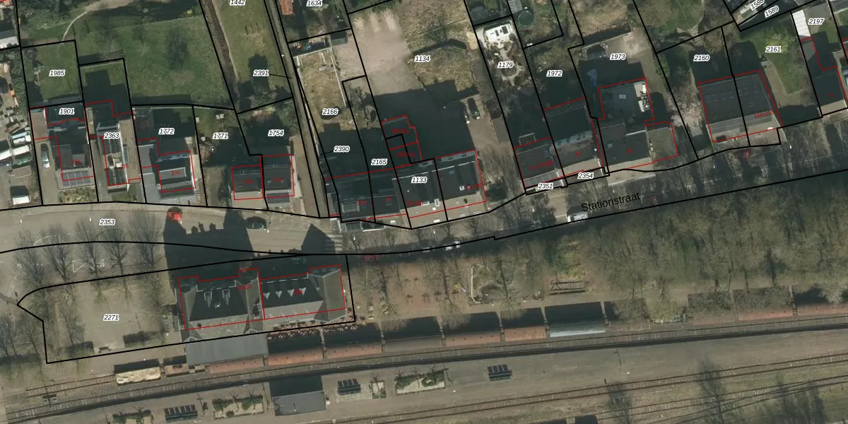 Het perceel waarop Stationstraat 25 staat heeft een oppervlakte van 165 m². Dit is een middelgroot perceel. De perceeloppervlakte wordt geregistreerd door het Kadaster. Gedetailleerde informatie over de maten van dit perceel kunt u vinden in het rapport Kadastrale kaart met maatvoering van Stationstraat 25.