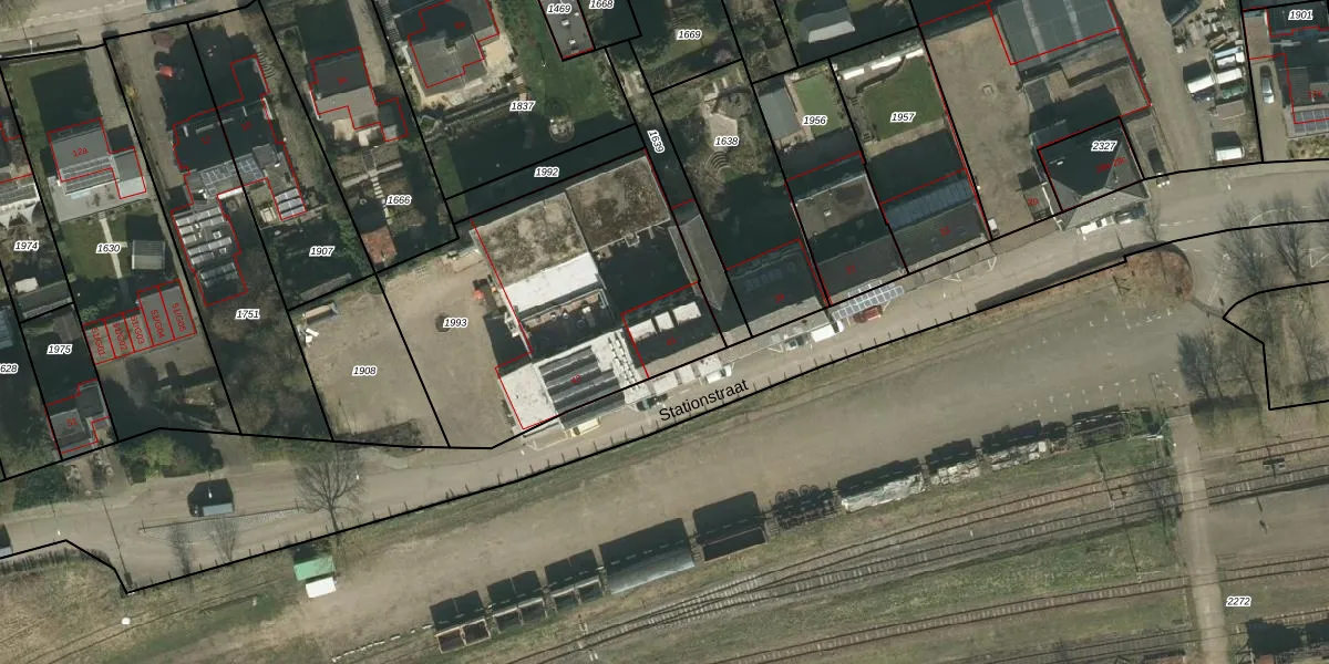 Het perceel waarop Stationstraat 41 staat heeft een oppervlakte van 1415 m². Dit is een zeer groot perceel. De perceeloppervlakte wordt geregistreerd door het Kadaster. Gedetailleerde informatie over de maten van dit perceel kunt u vinden in het rapport Kadastrale kaart met maatvoering van Stationstraat 41.