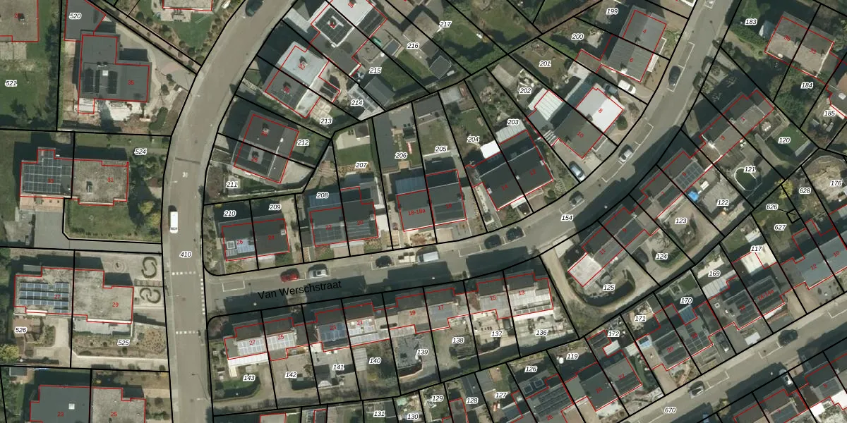 Het perceel waarop Van Werschstraat 18 staat heeft een oppervlakte van 345 m². Dit is een groot perceel. De perceeloppervlakte wordt geregistreerd door het Kadaster. Gedetailleerde informatie over de maten van dit perceel kunt u vinden in het rapport Kadastrale kaart met maatvoering van Van Werschstraat 18.