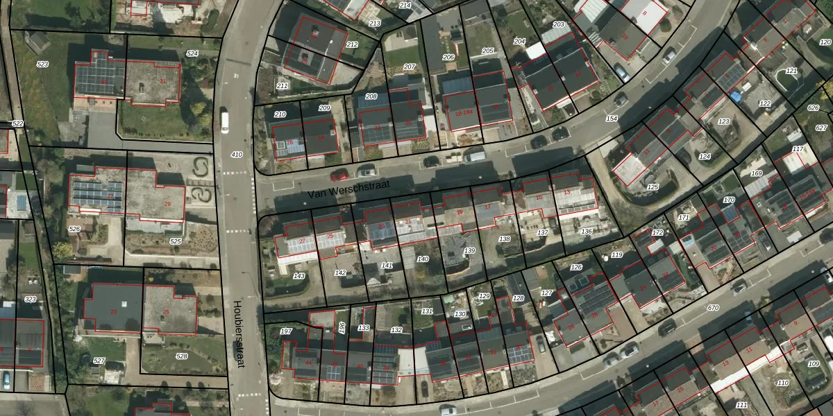 Van Werschstraat 21 is gelegen op kadastraal perceel SPV00E140. Deze kadastrale aanduiding is uniek en wordt gebruikt door het Kadaster om eigendomsrechten en andere zakelijke rechten vast te leggen. Het perceel maakt onderdeel uit van de kadastrale gemeente Simpelveld.